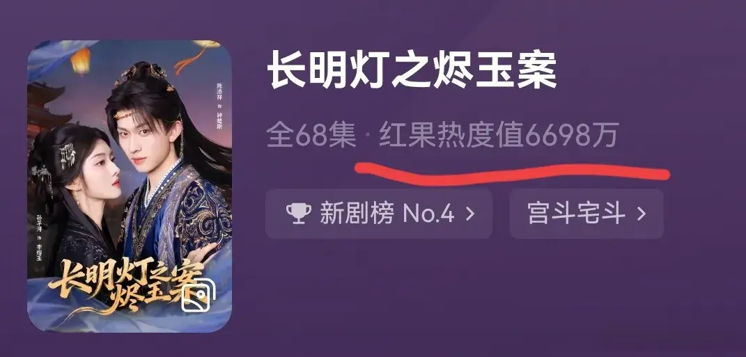 12月9日,陈添祥主演的古装新剧《长明灯之烬玉案》刚上线,热度就没冲起来,早知道,这部剧在未播出时红果平台预约量已经破百万,